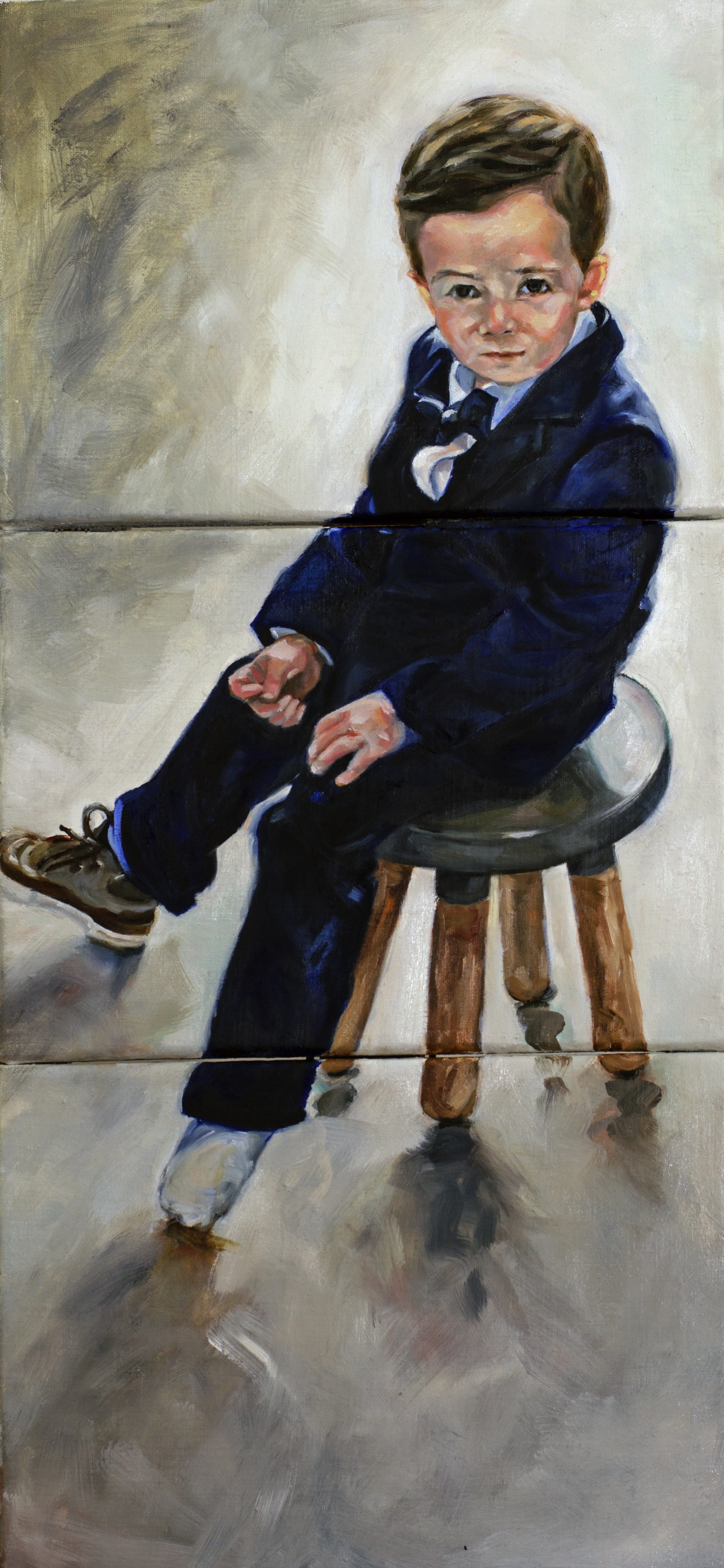 BENJAMIN IN HIS FIRST SUIT, oil on linen, 36 X 12 inches
