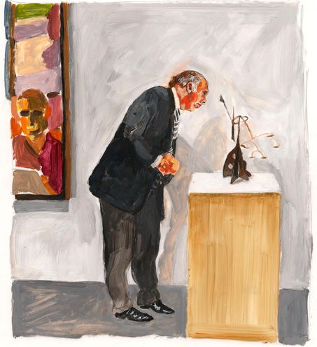 Collector with Strange Sculptures, 2011, acrylic on mylar, 11 x 8.5 inches