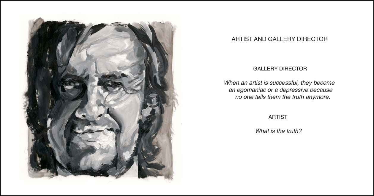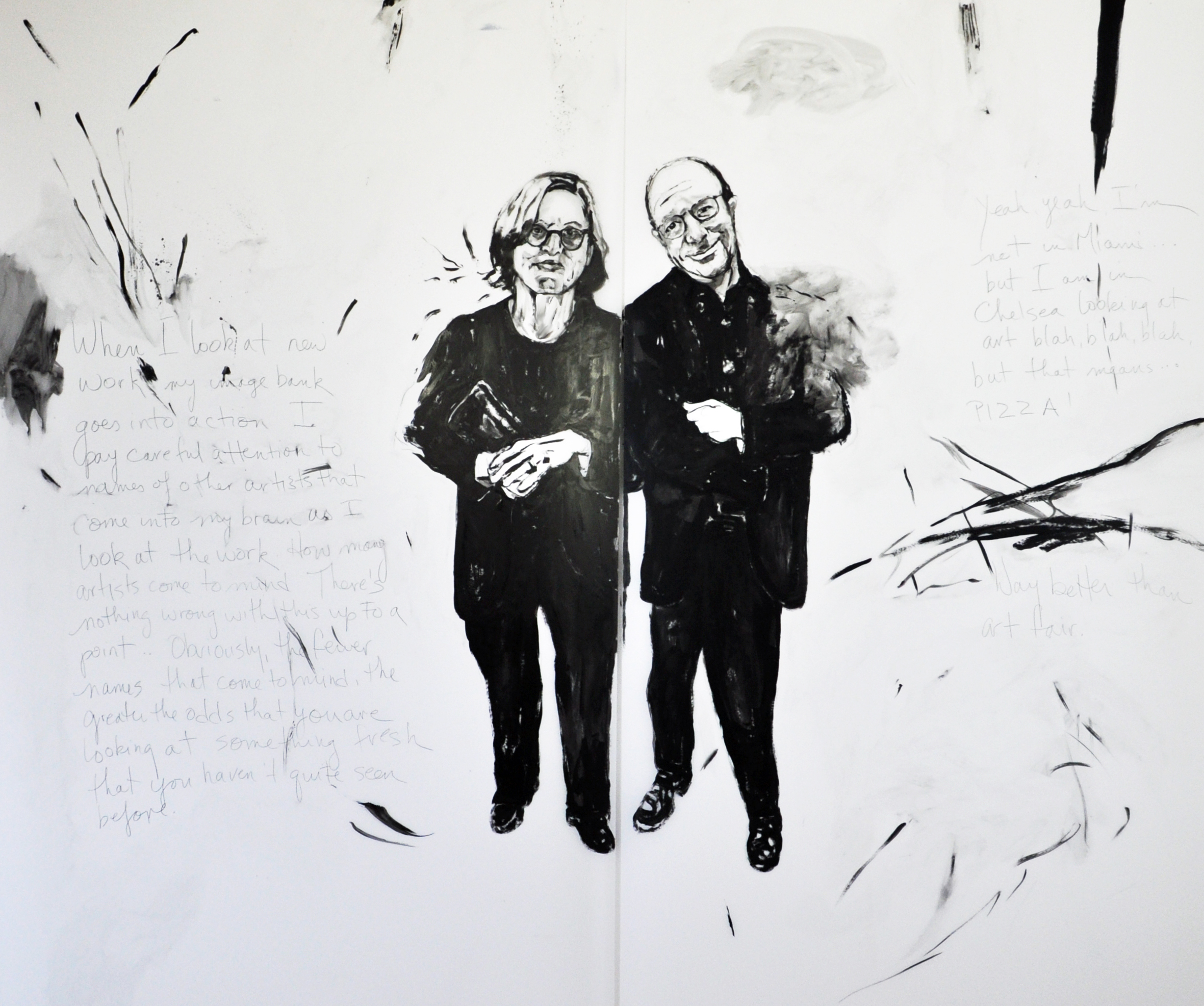 Roberta Smith, Jerry Saltz, 2011, acrylic on mylar, 11 x 8.5 inches