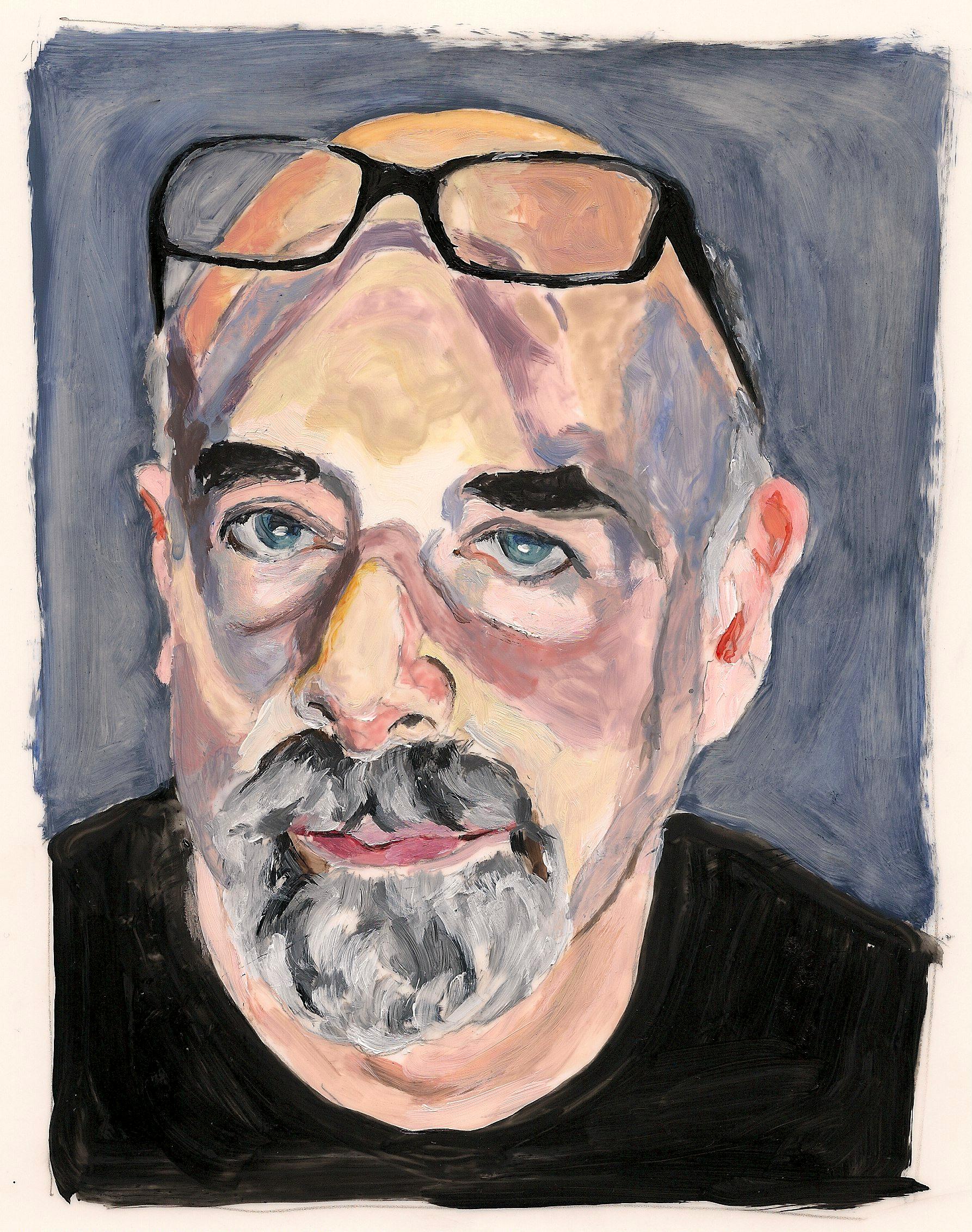 Man with a Blue Scarf II, 2015, acrylic on mylar, 11 x 8.5 inches