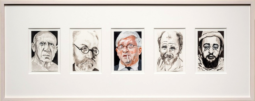 Six Great Artists (Picasso, Matisse, Hockney, Klimt, Lautrec), 2013, acrylic and gouache on paper, 6 x 4 inches each
