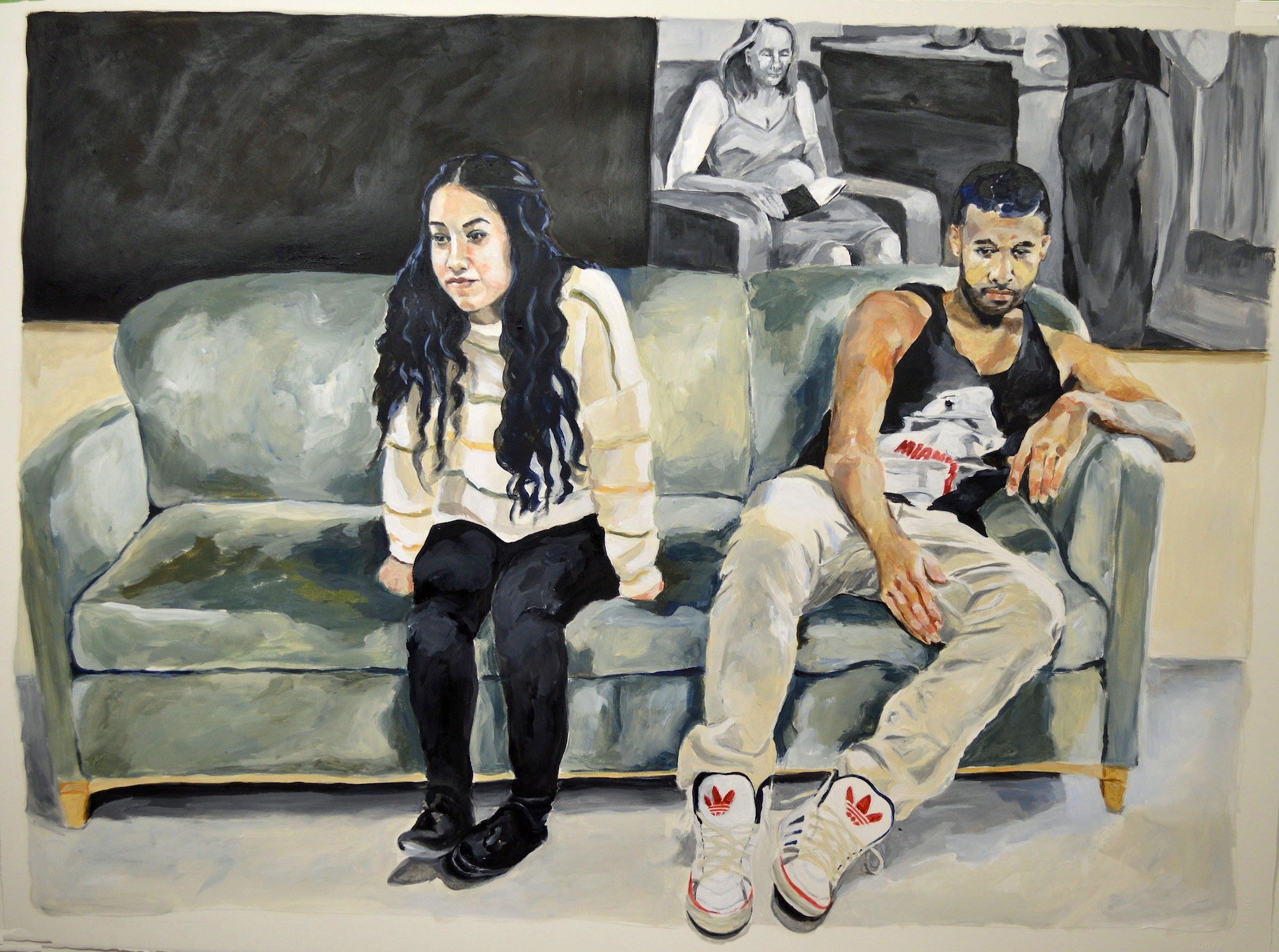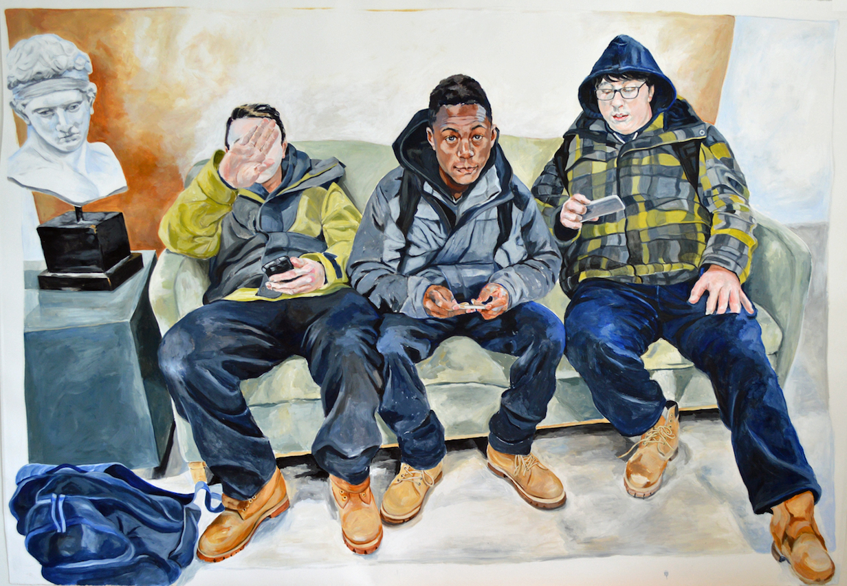 Situated in an art school studio, the green couch created curious tableaux and mise-en-scenes of teenage behaviours. The positions and gestures of present-day youth with historical artworks as backdrops generate both intended and accidental meanings.