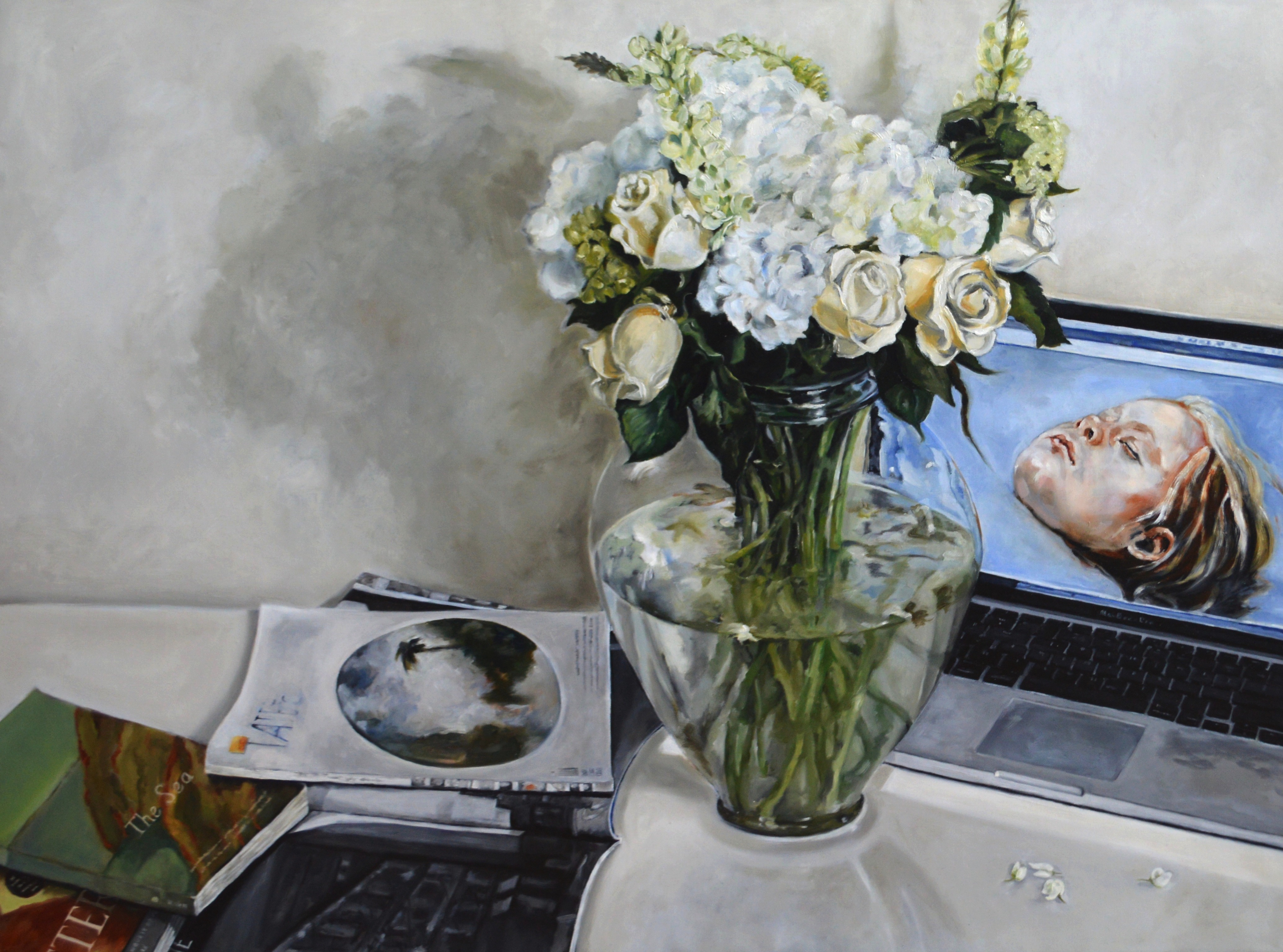 Death By Laptop, 2015, oil on linen, 30 x 40 inches